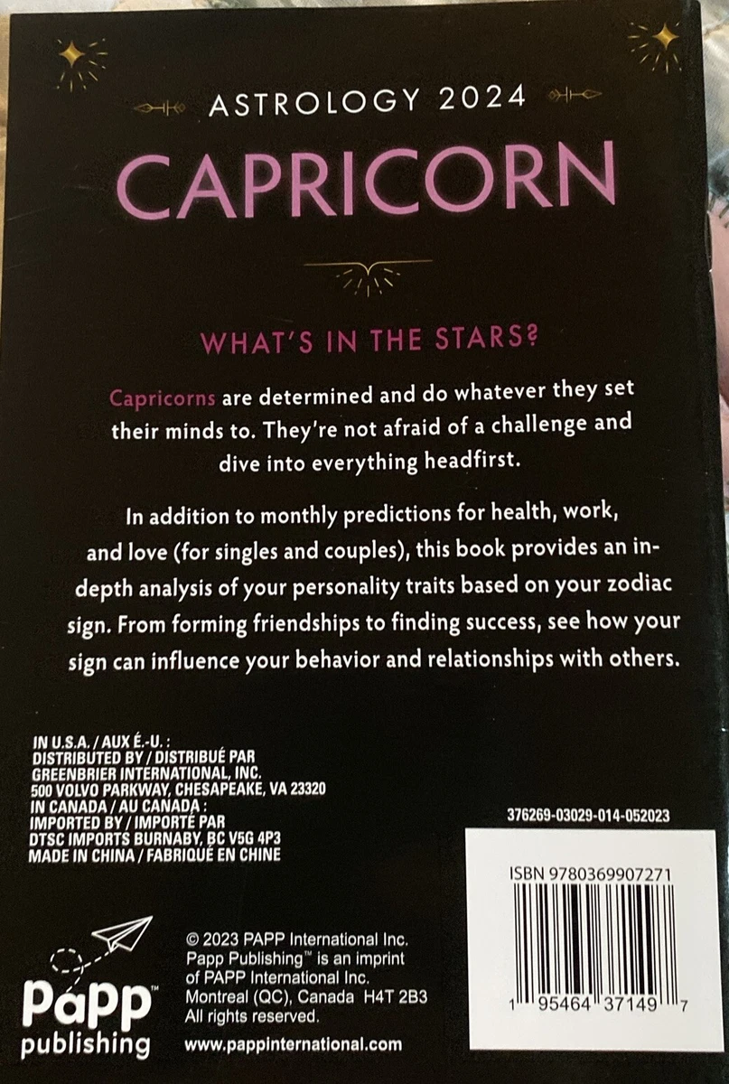 Astrology 2024 Capricorn December 22 to Jan. 20 Paperback Book